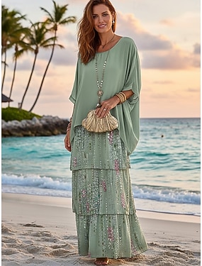 Női ruhakészlet A vonalú ruha Szabadság Alkalmi Virágos Grafika Többrétegű Nyomtatott Maxiruha Háromnegyedes V-alakú Napi Tengerpart Bíbor Lóhere Khakizöld Nyár Tavasz Normál