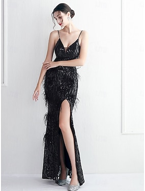 Hüvely Column Padlóhosszú Csillogó Ruha Bálruha Party Ruha Anyós Ruha Ujjatlan V Nyakú Elegáns Vintage Party Csillogóval