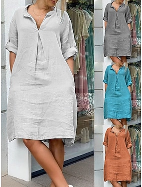Női Midi ruha Műpamut ágynemű Váltó ruha Fehér ruha hétköznapi ruha Alap Napi Hétvége Laza öltözet Sima Féhosszú Terített nyak Fehér Bíbor Lóhere Szürke Nyár Tavasz