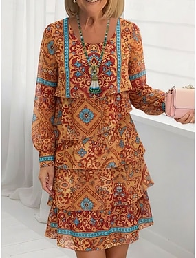 Női Mini ruha Vintage ruha hétköznapi ruha Boho ruha Nyomtatott ruha Elegáns Divat Modern Napi Szabadtéri Vakáció Normál Sima Hosszú ujj Állógallér Barna Nyár Tavasz Ősz