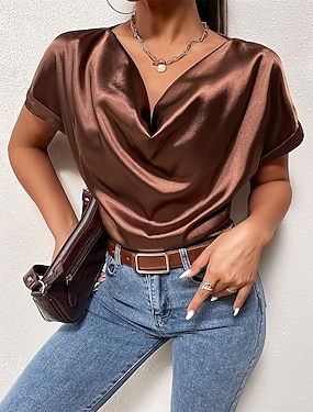 Női elegáns Szatén felső Blúz Öltözetes felsők Fodrozott Kollázs Ráncolt Sima Elegáns Szüret hölgyek Ujjatlan V-alakú Normál felsők Napi Munka Szabadság Barna Nyár Tavasz