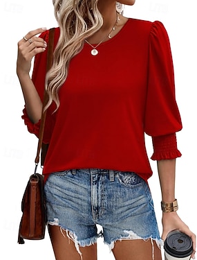 Női Póló Tee Top Sima Divat Stílusos Klasszikus Háromnegyedes Lámpás hüvely Csónaknyak Normál felsők Napi Alkalmi Hétvége Fehér Sárga Bíbor Sárgabarack Nyár Tavasz