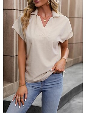 Női Póló Texturált Tömör szín Elegáns Stílusos Rövid ujjú Denevérujj V-alakú Állógallér Normál felsők Napi Alkalmi Sárgabarack Nyár Tavasz
