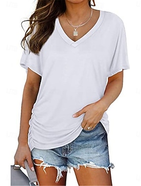 Női Póló Tee Top Csokor Tömör szín Divat Klasszikus Alkalmi Rövid ujjú V-alakú Normál felsők Napi Alkalmi Hétvége Fekete Fehér Bor Nyár Tavasz
