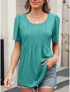 Női Póló Tee Top Fodrozott Sima Divat Stílusos Klasszikus Rövid ujjú Terített nyak Normál felsők Napi Alkalmi Hétvége Fekete Fehér Világoszöld Arcpír rózsaszín Bor Nyár Tavasz