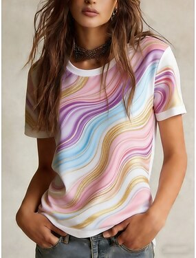 Női Póló Nyomtatott Mellkasi gombok Grafika Szivárvány Csíkos Stílusos Klasszikus Modern Rövid ujjú Henley Normál felsők Napi Szivárvány Nyár Tavasz