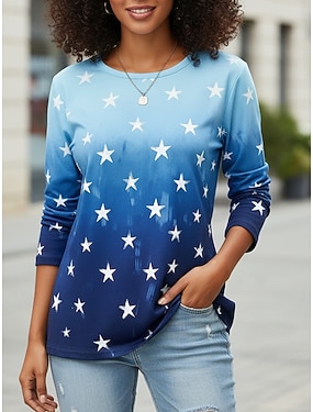 Női Póló Nyomtatott Ombre Grafika Zvijezda Divat Stílusos Alkalmi Hosszú ujj Terített nyak Normál felsők Napi Hétvége Nyaralási viselet Medence Nyár Tavasz Ősz