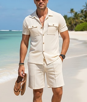 Férfi 2 darab Ing készlet Nyári készlet És Készlet Sima Hétköznapi Napi Vakáció Gallér Rövid ujjú Rövid nadrág Nyár Divat Alkalmi Kényelmes Ruházat