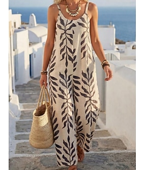 Női Jumpsuitek Utcai sikk Tömör szín Ujjatlan Mély-U Nyomtatott Napi Tengerpart Laza öltözet Fekete Fehér Lóhere Nyár