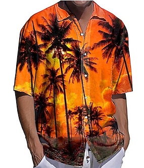 Férfi Kókuszfa Naplemente Trópusi növények Ing Hawaii ing Aloha ing Rövid ujjú Ing Térfogatcsökkenés Divat Utcai sikk Dizájn Szabadtéri Utca Hétköznapi Fehér Sárga Medence S M L