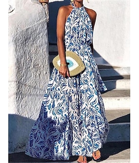 Női Hosszú ruha Maxi ruha hétköznapi ruha Swing ruha A vonalú ruha nyári ruha Stílusos Alkalmi Vakáció Napi Randi Normál Virágos Ujjatlan Kötőfék nyaka Medence Lóhere Nyár
