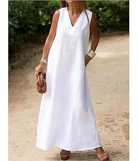 női fehér ruha pamutvászon ruha maxi ruha vakációs ruha alkalmi ruha modern napi hétvégi rendes fit sima v nyak nyár tavasz
