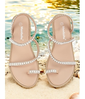 női gyöngypántos lapos szandál – elegáns strasszköves strandszandál nyárra, esküvőkre és hétköznapi kirándulásokra