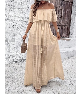 Női Elegáns Szüret Divat Alkalmi Maxi Magas derék Szoknyák Sima Fodrozott Kollázs Töredezett végű Nyúlós Napi Tengerpart Sárgabarack Fekete Fehér Lóhere Nyár Pamut Poliészter
