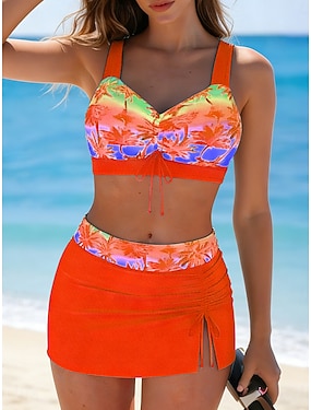 Női Fürdőruha Tankini 2 darab Szoknya Fürdőruha Elegáns Szabadság Grafika Tropikus V-alakú Ujjatlan Fürdőruhák