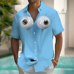 Férfi Rajzfilm Nagy szeme Ing Nyári póló Gombos póló Rövid ujjú Vicces Szabadtéri Vakáció Hétköznapi Nyár Tavasz Térfogatcsökkenés 3D nyomtatás galléros ingek Első egy zseb Rubin