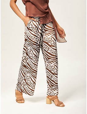 női bő szárú nadrág szatén absztrakt geometrikus minta rugalmas derék rakott hétköznapi vakáció elegáns tavasz nyár ősz