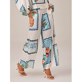 Női Széles lábszár Teljes hossz Szatén Zseb Elegáns Szabadság Alkalmi Hétköznapi Fehér Nyár Tavasz Ősz XS S M