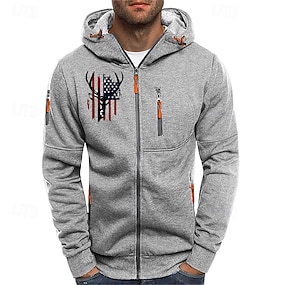 Férfi Kapucnis felsőrész Teljes cipzáros kapucnis Fekete Fehér Sötétkék Világos szürke Sötétszürke Kapucni Jávorantilop Zászló Zseb Nyomtatott Sport & Szabadtéri Napi Szabadság Poliészter Utcai sikk