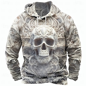 Férfi Koponya 3D Kapucnis felsőrész Pulóver Punk Túlzott Gótikus Alkalmi Hosszú ujj Terített nyak Kapucni Klub Utcai öltözék Sárga Medence Szürke Zsinór Ősz Tél Tervező S M L XL XXL XXXL