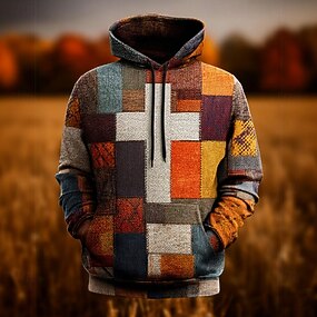 Férfi Mértani Kockás Kapucnis felsőrész Pulóver Divat Napi Hosszú ujj Terített nyak Otthon Parti Utcai öltözék Narancssárga Barna Lóhere Zsinór Ősz Tél Tervező S M L XL XXL XXXL