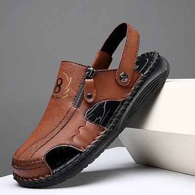 Férfi barna, zárt orrú halászszandál, kivágott kényelmes hétköznapi cipő, szabadtéri szabadidős stílus férfiaknak, alkalmas utazásra, sétálásra, szabadtéri tevékenységekre és mindennapi viseletre
