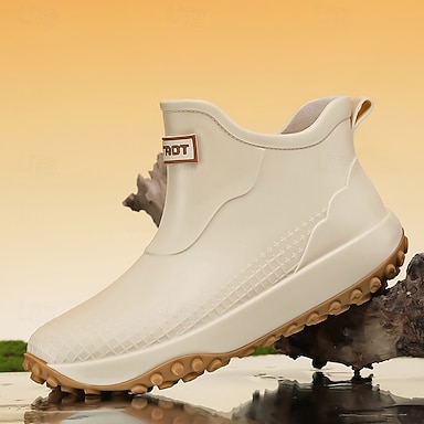 férfi fehér vízálló bokacsizma, könnyű, bebújós kültéri munkacipő, csúszásgátló kerti lábbeli esős napokra, horgászatra, mezőgazdasági munkára, kerti munkára és mindennapi kültéri viseletre