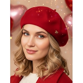 női szív alakú barett sapka, műgyapjú anyagból, több színben kapható, tökéletes Valentin-napi ajándéknak és mindennapi viseletnek