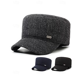 férfi fülvédős lapos sapka – több színben, poliészter gyapjú keverékből, meleg és stílusos téli és szabadtéri tevékenységekhez