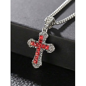 Férfi karácsonyi ajándék ötvözet kereszt medál nyaklánc, többszínű, csillogó kristálydizájn, stílusos kiegészítő ünnepi partikra és hétköznapi viseletre