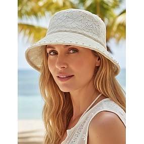női csipke poliészter vödörkalap műgyöngy díszítéssel, összecsukható, hordozható napkalap több színben, hétköznapi viseletre, utazáshoz, nyaraláshoz és tengerparti üdülőhelyhez