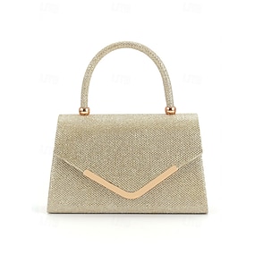 női csillogó esti kuplungtáska láncszíjjal – elegáns strukturált felső fogantyús pénztárca esküvőkre, koktélpartikra és hivatalos eseményekre