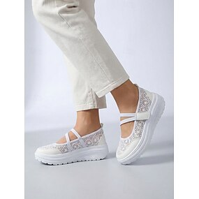 női fehér csipkés Mary Jane tornacipők – lélegző, hálós, kényelmes sétacipők, könnyű platformcipők utazáshoz, kertészkedéshez &mindennapi viselet
