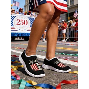 Az Egyesült Államok 250. évfordulós női USA kötött slip-on sportcipők - Könnyű lélegző sétáló cipők hazafias szabadidős stílus felvonulásokhoz a Függetlenség Napjára utazáshoz és napi viselethez