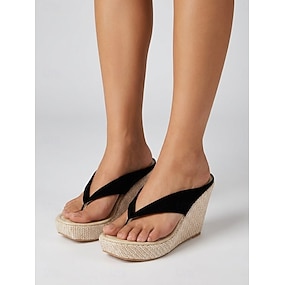 női fekete tanga éktalpú szandál - elegáns, velúr textúrájú, platformos, magas sarkú papucs szőtt espadrill talppal szigeti nyaralásokhoz, trópusi tengerparti kiruccanásokhoz &nyári hajózási ruházat