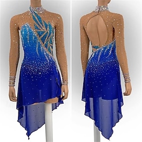 Kűrruha Női Lány Klizanje na ledu Ruhák Kék Nyissa meg a Vissza elemet Aszimmetrikus szegély Háló Nagy rugalmasságú Edzés Verseny Kűrruhák Klasszikus Kristály / Strassz Hosszú ujj Jégkorcsolyázás