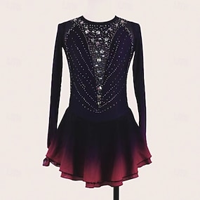 Kűrruha Női Lány Klizanje na ledu Ruhák Ibolya Kollázs Hüvelykujj bújtató Háló Spandex Nyúlós Edzés Gyakorlat Professzionális Kűrruhák Melegen tartani Kristály / Strassz Hosszú ujj Jégkorcsolyázás