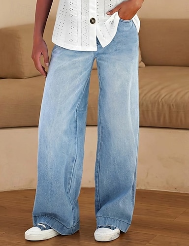 Női Farmerek Széles lábszár Divat Utcai sikk Teljes hossz Magas derék Sima Zseb kellemes Mekano Kényelmes Mikroelasztikus Szabadtéri Utca Medence Tavasz & Ősz Tavasz, Ősz, Tél, Nyár Normál