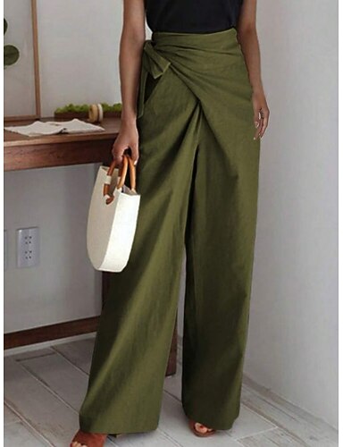 Női Műpamut ágynemű Széles lábszár Pamutszövet nadrág Szabadság Divat Utcai sikk Teljes hossz Magas derék Sima kellemes Mokaszinok Mekano Nem elasztikus Szabadtéri Utca Katonazöld Nyár Tavasz Ősz