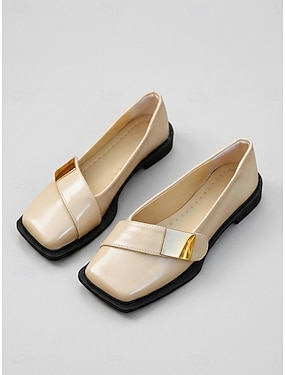 női sikkes bézs színű, szögletes orrú lapos cipő - aszimmetrikus pánt &arany fém díszítés mindennapi irodába, hétköznapi sétákhoz &modern minimalista stílus