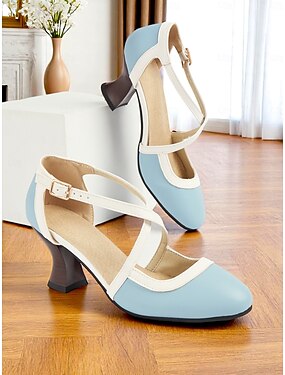 Női Világoskék 1920-as Évek Vintage Gatsby Kereszt Pántos Sarkak- Retro Stílusú Műbőr Pumpák Domború Sarkakkal Irodai Partikhoz és Inspirált Looks-hoz