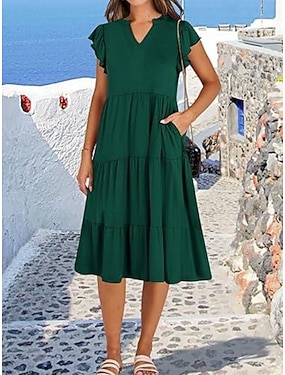 Női Térdig érő ruha hétköznapi ruha nyári ruha Elegáns Divat Modern Szabadtéri Vakáció Alkalmi Normál Sima Rövid ujjú V-alakú Fekete Katonai zöld Rubin Burgundi vörös Nyár Tavasz