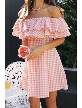 Női Mini ruha Ballagási ruha Divat Napi Szabadtéri Szabadság Normál Kockás Rövid ujjú Aszimmetrikus Arcpír rózsaszín Nyár