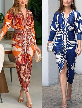 Női Midi ruha Hüvelyruha Boho ruha Elegáns Divat Modern Napi Vakáció Alkalmi Normál Virágos Grafika Hosszú ujj V-alakú Medence Narancssárga Nyár Tavasz