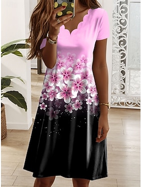 Női Térdig érő ruha Nyári ruha Pólóruha A vonalú ruha Szabadság Alkalmi Boho Tengerpart Normál Virágos Grafika Rövid ujjú V-alakú Medence Arcpír rózsaszín Rubin Narancssárga Nyár Tavasz