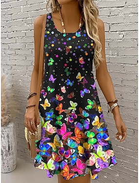 Női Mini ruha hétköznapi ruha Nyári ruha A vonalú ruha Vállon kívüli ruha Szabadság Alkalmi Szabadság Tengerpart Normál Ombre Grafika Pillangó Ujjatlan Terített nyak Kanálnyak Colourful Sárga Rubin