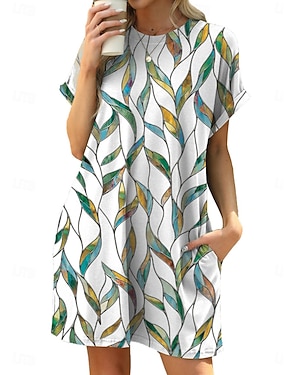 Női Mini ruha Pólóruha Váltó ruha Szabadság Alkalmi Szabadtéri Alkalmi Laza öltözet Virágos Falevél Rövid ujjú Kerek nyakkivágás Haditengerészet Fehér Rubin Lóhere Nyár Tavasz