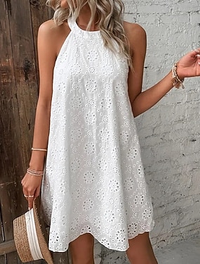 Női Mini ruha Fehér ruha Halter nyakú ruha Eyelet ruha Divat Szabadtéri Szabadság Randi Normál Sima Ujjatlan Kötőfék nyaka Narancssárga Lóhere Bézs Nyár Tavasz
