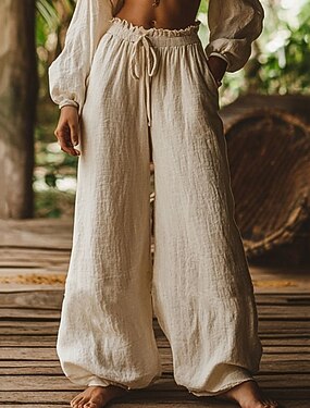 Női Műpamut ágynemű Széles lábszár Nyári nadrág Nadrágok Szabadság Divat Alap Teljes hossz Természetes Sima Zseb Rugalmas derék Mokaszinok Gyors szárítás Mekano Nem elasztikus Utcai öltözék