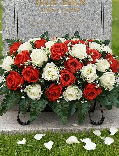 temetői sírkő virágnyereg emléknapra mesterséges temetői virágok rózsa, sírdíszítés, nem vérző színek és könnyű illeszkedés